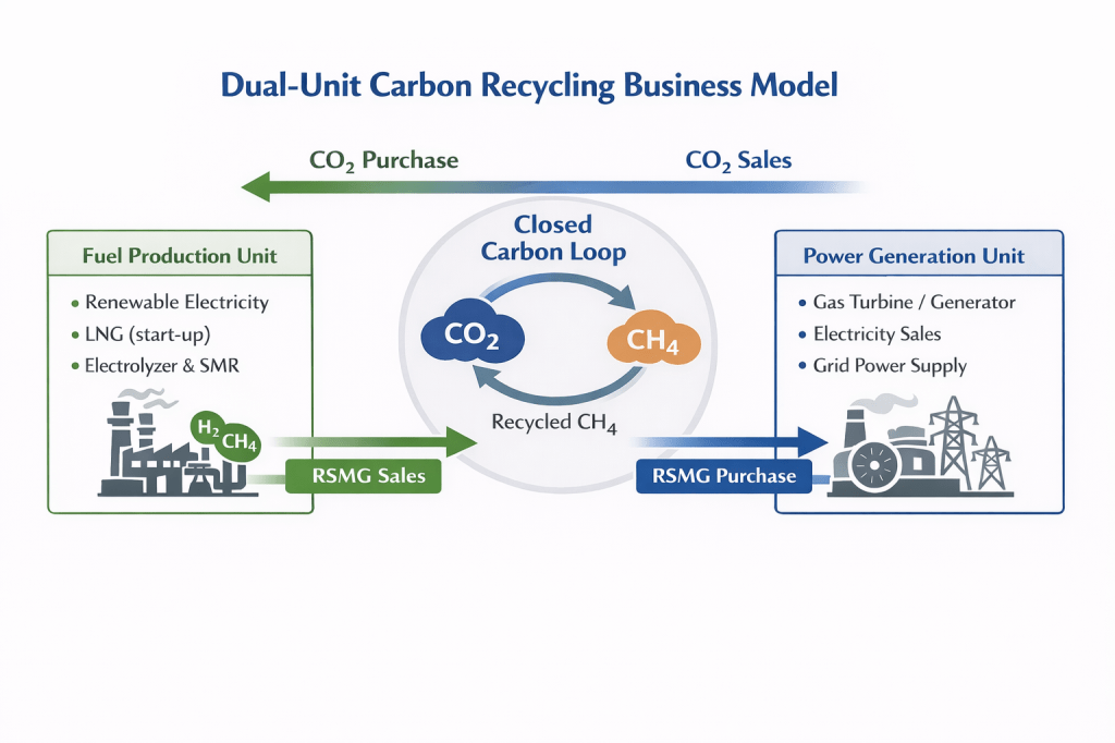 CRT instead recycles carbon as a molecular energy carrier, while renewable hydrogen provides the incremental energy required to maintain the loop.