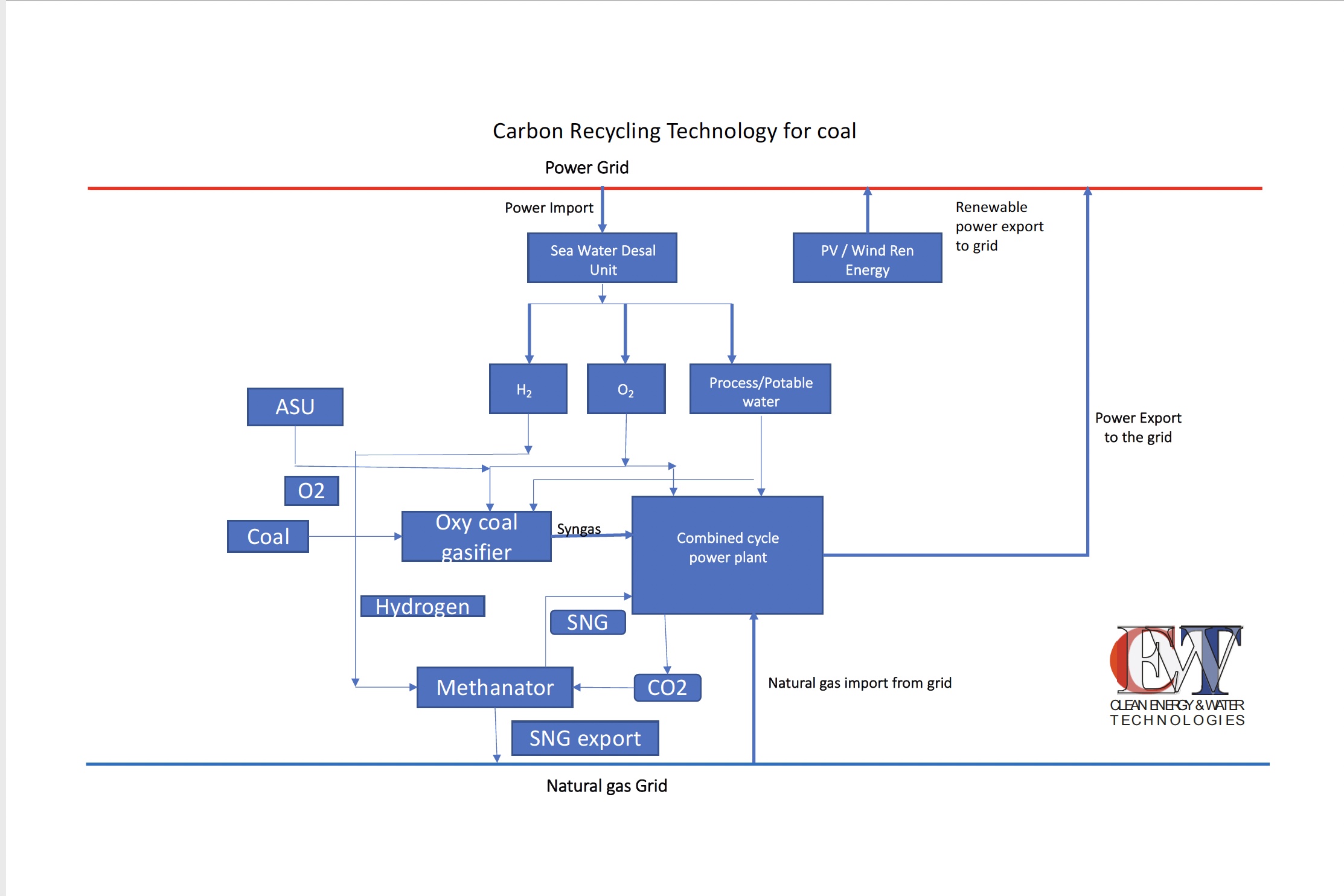 Let me explain in a lay mans’s language. Imagine you fill your car with 50 lit  petrol and go on a trip. The petrol is a Hydrocarbon (chemical term).Suppose I fit a small equipment on the exhaust pipe of your car which will collect the exhaust gases in a liquid form and collect it. When you finish your trip you can remove that equipment which collected your exhaust in a liquid form and hand over to a small processing unit on the road side. The processing unit will convert that exhaust  liquid into Petrol once agin. You can fill your car with this new petrol and also fit your car with new exhaust collector and return back to your destination. It means there is a zero emission from your car. You need not convert your car into electric or do any modification at all. You don’t have to fill your car with new petrol. It is called CRT (carbon recycling technology). It means you don’t need any petrol at all except for the initial filling. Even that can be eliminated by extracting Carbon from sea water and synthesising a Carbon negative Petrol. No pollution at all because of zero emissions. It simply uses the same Carbon atom again and again by substituting the ‘fossil hydrogen’ with’ renewable hydrogen’ with absolutely no emissions. It fulfils all the requirement of a ‘circular economy’ and a Carbon -free atmosphere. What is unique about this technology is it derives Carbon from seawater (where CO2 has already been absorbed from industrial emissions) and converting into Carbon negative synthetic fuel (unlike Carbon neutral synthetic fuels which are made from CO2 emissions that encourages continuous usage of fossil fuels) with cleaner properties. An Oxy combustion will make it a unique fuel of the future. Our current focus is to generate a base load power(24 x7) without any energy storage at all. It is the only technology in the world that generates a base load power (24 x 7) and synthetic fuels such as aviation fuel, marine fuel, petrol, diesel and CNG using only Sun/wind and Seawater.